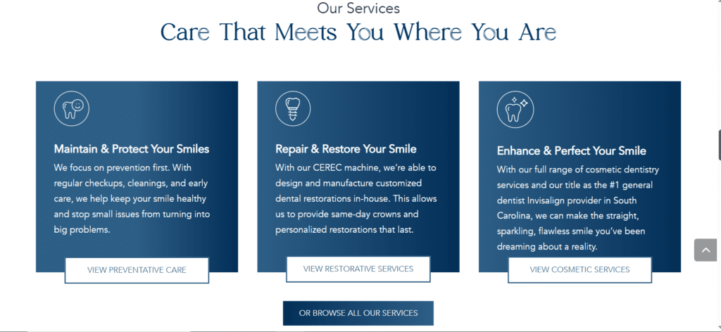 Patient-Centric Content: Developed clear, informative service content that educates patients while addressing common dental concerns and search intent.