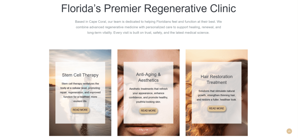 - Google Business Profile Optimization: Fully optimized the clinic’s GBP listing with accurate service categories, professional photos, treatment descriptions, operating hours, and consistent NAP data — boosting prominence in Google Maps and the local 3-pack across Cape Coral and SW Florida searches.